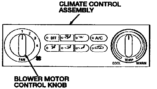 The position of the blower motor control knob determines the speed at which the blower motor operates. Each position of the blower motor control knob is detented for positive engagement. The blower motor control works in conjunction with the blower motor resistor to control the four speed operation of the blower motor.