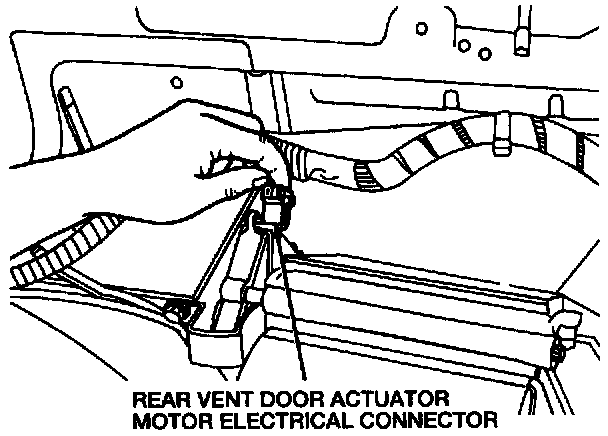 7. Disconnect the rear temperature blend door actuator motor electrical connector and rear vent door actuator motor electrical connector.