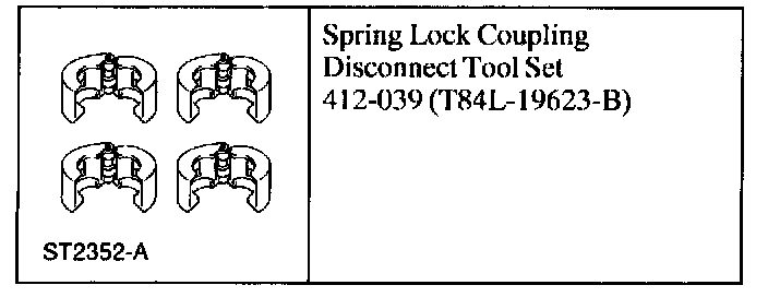 9. Use A/C Spring Lock Coupling Disconnect Tool Set T84L-19623-B and disconnect the two A/C tube lock coupling springs from under the vehicle.