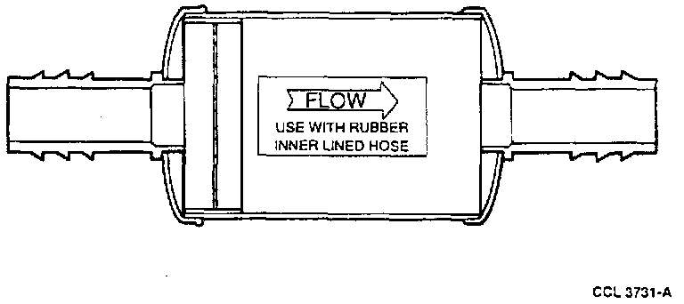 8. Remove a length of evaporator to compressor suction line to accommodate the evaporator to compressor suction line filter and install the filter using the hose clamps provided with the kit. Be sure the filter is correctly oriented for refrigerant system flow. Check the label on the filter. On the filter for nylon lined hose, install O-ring seals (two on each filter tube, being sure they are properly seated in the grooves on the tube). Tighten the hose clamps securely.
