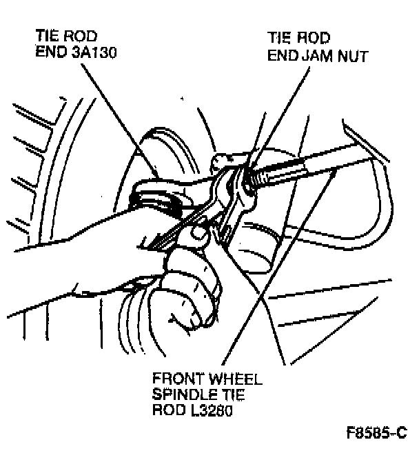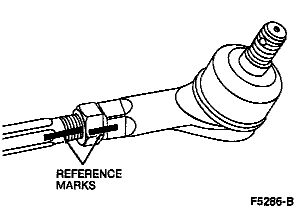 Adjust the steering angles as follows:1. With paint or marking pen, mark both tie rod ends, front wheel spindle tie rods, and front wheel spindle tie rod jam nuts in their original positions. These reference marks will help in equalizing right and left adjustments.
