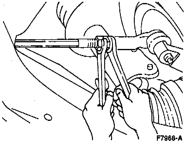 ^ One turn of the front wheel spindle tie rod (both sides) changes-the toe by approximately 6 mm (1/4 inch).