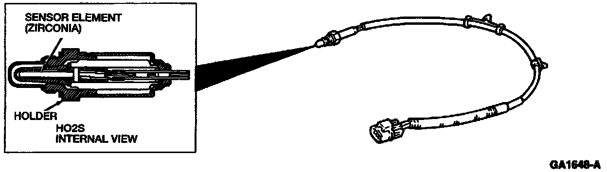 The vehicle is equipped with both upstream and downstream Heated Oxygen Sensors (HO2S), as On Board Diagnostics II (OBD II) legislation mandates. The Upstream Heated Oxygen Sensor (HO2S 11) is used to control engine fuel flow. The sensor detects the concentration of oxygen in the exhaust gas and sends a signal to the Powertrain Control Module (PCM). In a rich condition, the HO2S will output a voltage of 0.6 volts or greater, and in a lean condition a voltage of 0.4 volts or less will be output.