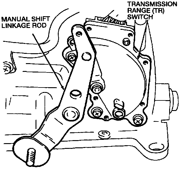 The Transmission Range (TR) switch is located on the transaxle case. It connects to the manual shift linkage rod and detects the gear position (P, R, N, D, 2, 1). The TR switch integrates the Park/Neutral Position (PNP) switch. The PNP switch is utilized in the starter circuit to detect PARK (P) and NEUTRAL (N) ranges. In addition, the TR switch includes a backup lamp switch.