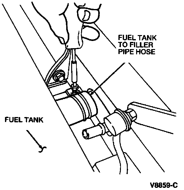 4. Separate the fuel tank to filler pipe hose from the fuel tank filler pipe.