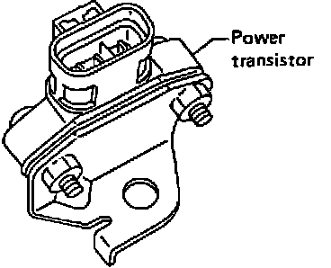 The power transistor is located near the base of the distributor, between the ignition coil and the distributor, and mounted to the A/C compressor bracket.
