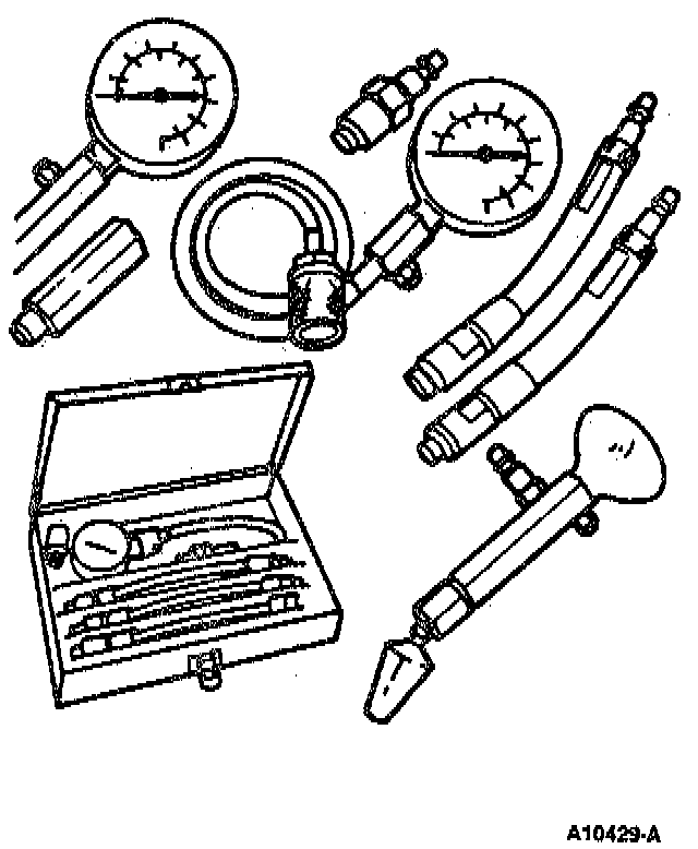 8. Normally, the first compression stroke will run the gauge indicator needle a considerable distance up the scale. Succeeding strokes will raise it more until the highest level is shown (this will require approximately four to five compression strokes). Record the highest reading.