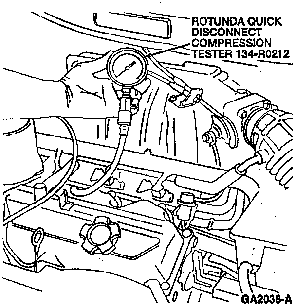 6. Install Rotunda Quick Disconnect Compression Tester 134-R0212 or equivalent tightly into the spark plug hole.