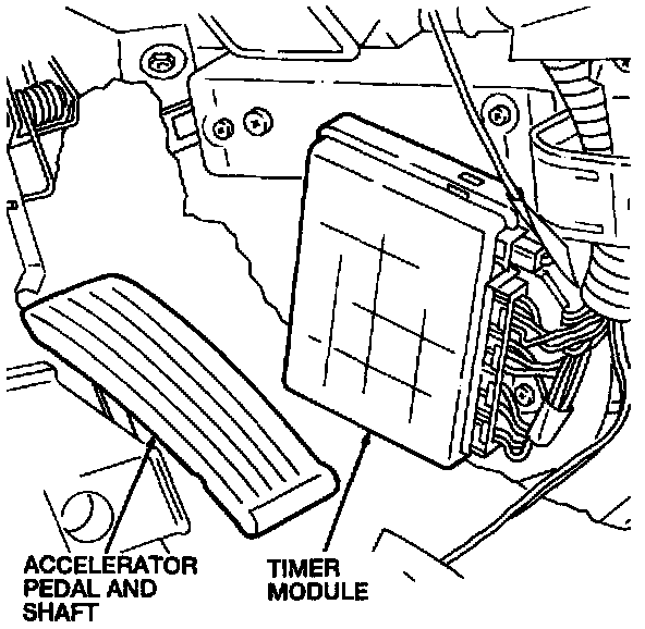 The timer module is located behind the center console, behind the LH instrument panel lower cover. The timer module is a microcomputer programmed to control the functions of the electronic door lock control system. It receives and sends signals between the various sensors and components.