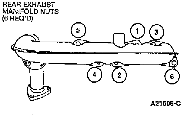 TORQUE SPECIFICATIONS^ Tighten the rear exhaust manifold nuts in the sequence shown to 18-22 Nm (13-16 ft. lbs.).