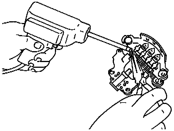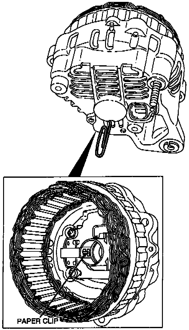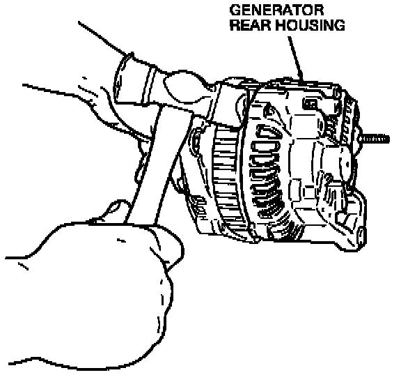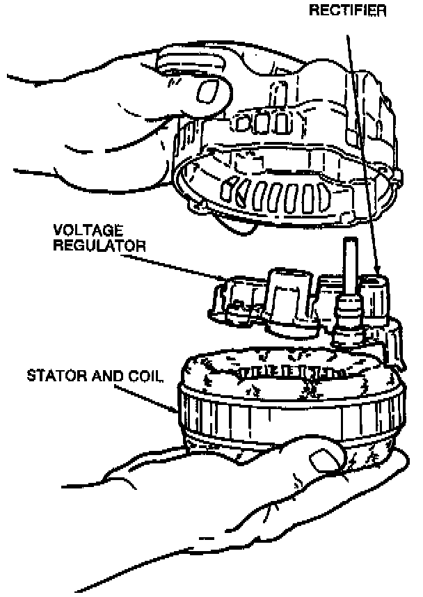 11. Remove the stator and coil, with the voltage regulator and the rectifier attached, from the generator rear housing.