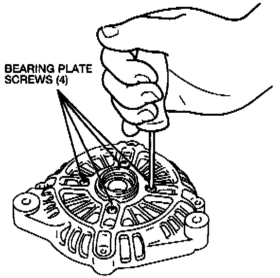 8. Install the bearing plate and the four bearing plate screws. Tighten the four bearing plate screws to 2-5 N.m (18-44 Lb-in).