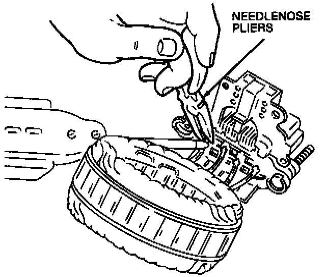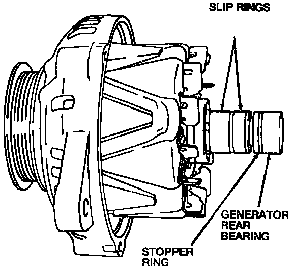 15. Fit the stopper ring into the eccentric groove of the generator rear bearing circumference. The protruding part of the stopper ring should fit into the deepest part of the eccentric groove. Note that for easy recognition, the edge of the deepest part of the eccentric groove is chamfered. By fitting the stopper ring in this way, the amount of stopper ring protruding from the eccentric groove is lessened, making assembly easier.