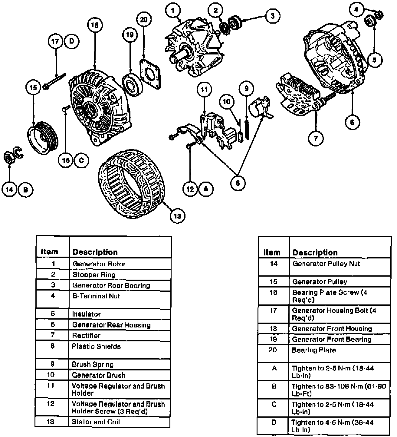 NOTE: Tighten generator housing bolts alternately to draw the generator front housing and generator rear housing together evenly.