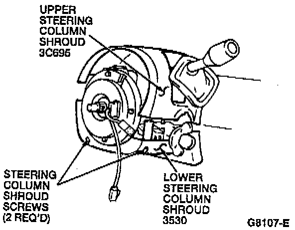 3. Remove the two screws from the lower steering column shrouds and remove the upper and lower shroud.
