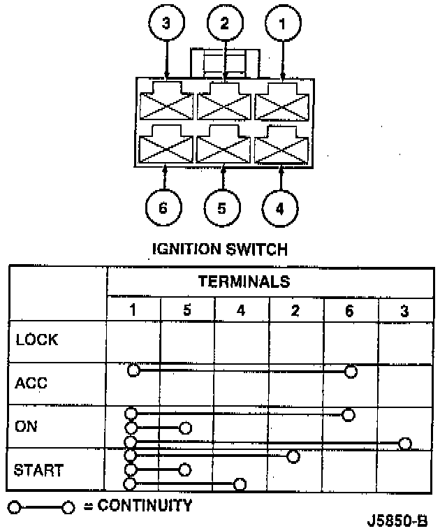. If continuity is not present according to the chart, replace the ignition switch.