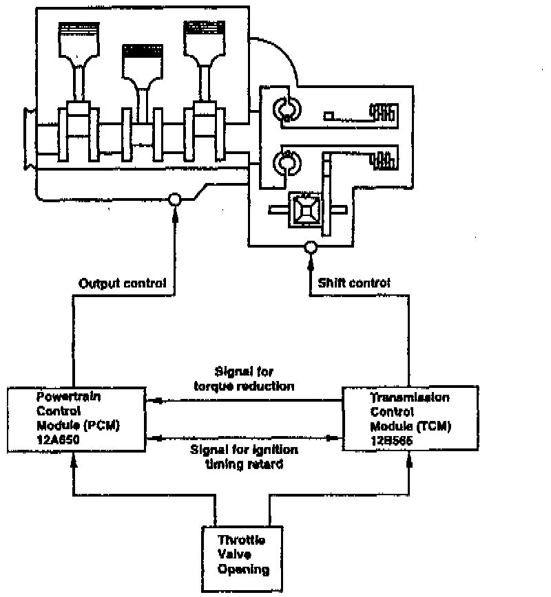 The 4F20E automatic transaxle employs electronic control of the powertrain for controlled shift points, line pressure, and self-learning. The communication between the powertrain control module and the transmission control module improves shift feel during quick start and quick acceleration.