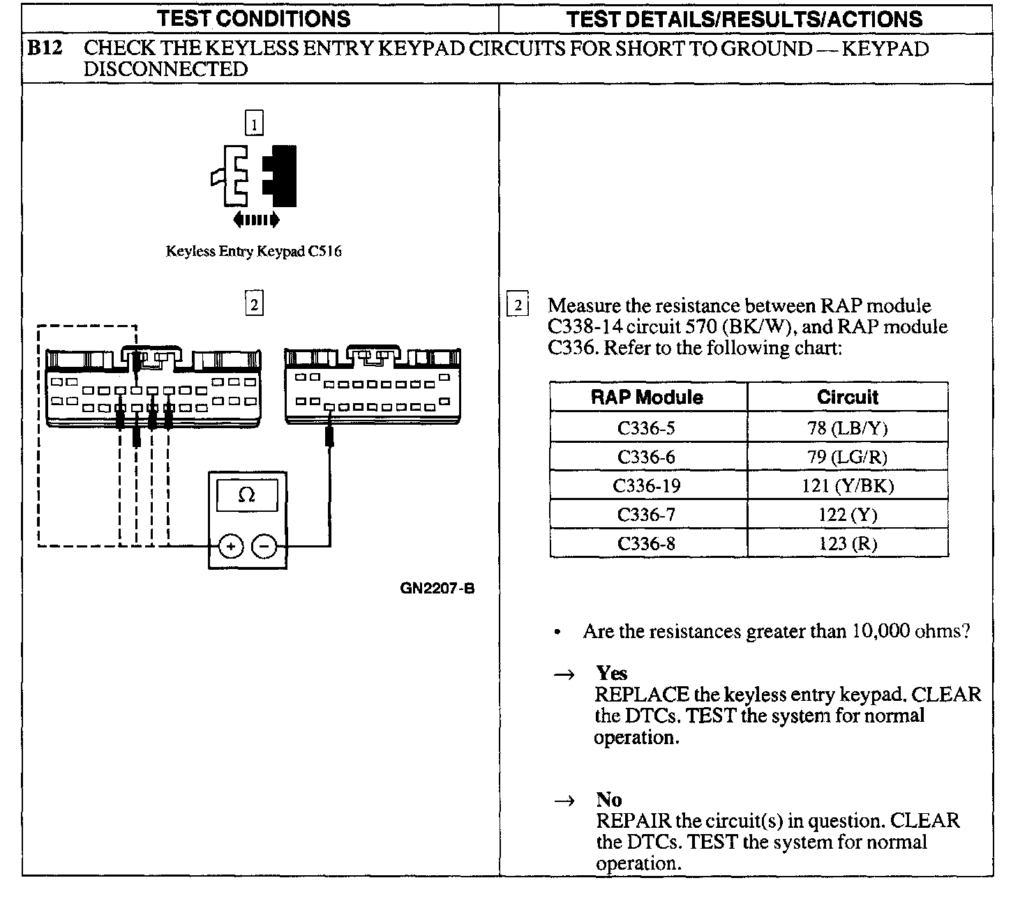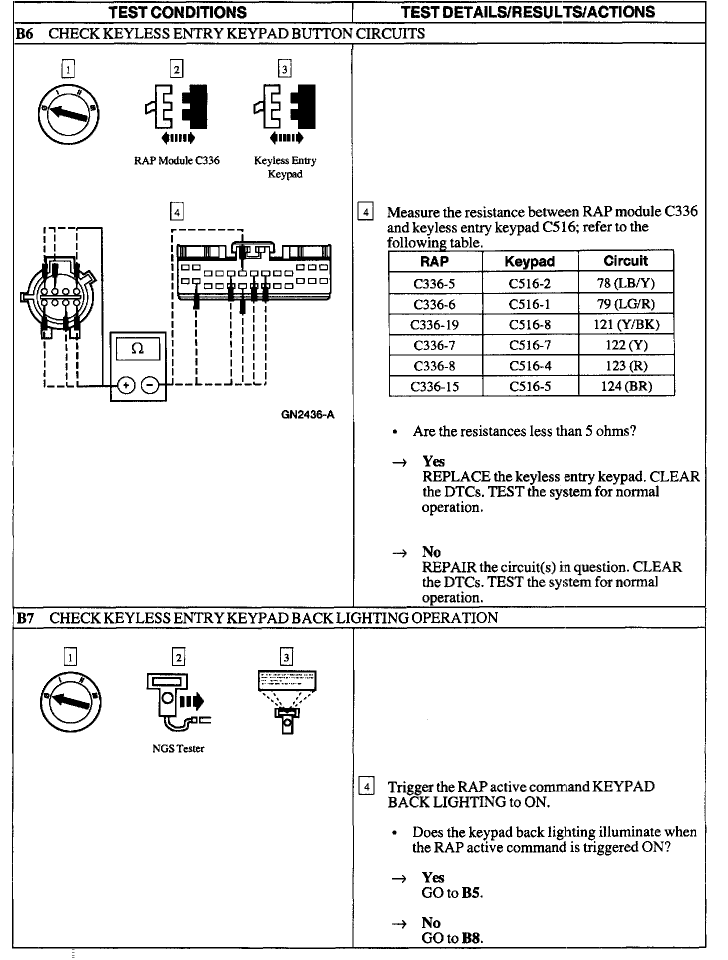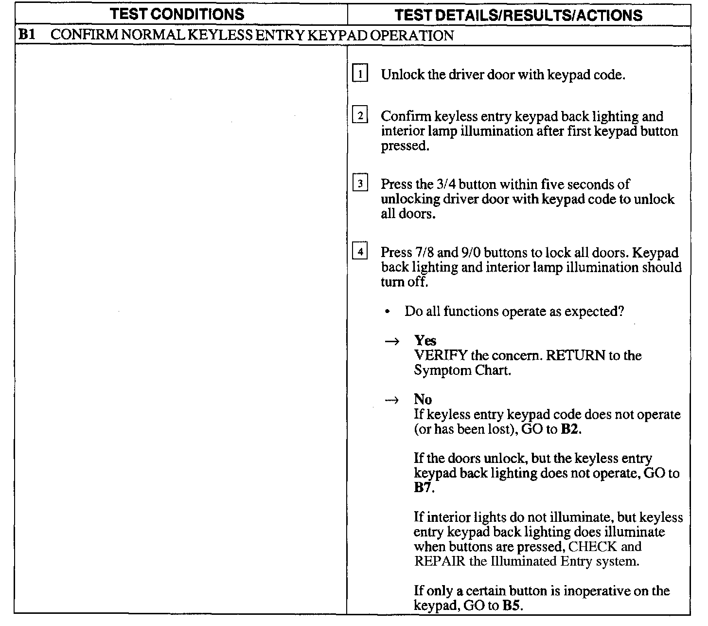 Test B: Doors Do Not Lock/Unlock W/Keyless Entry Keypad