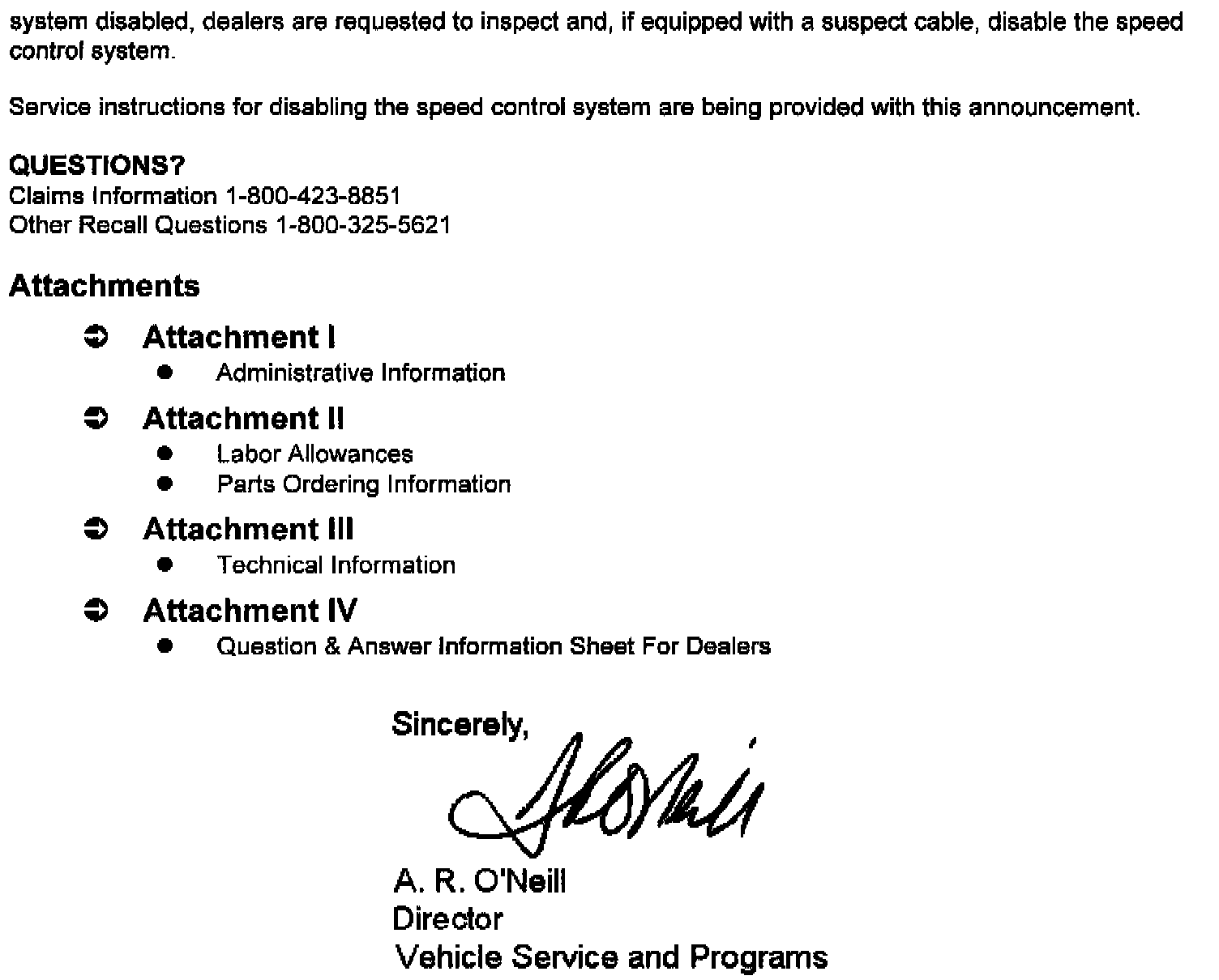 Recall - Speed Control Cable Replacement
