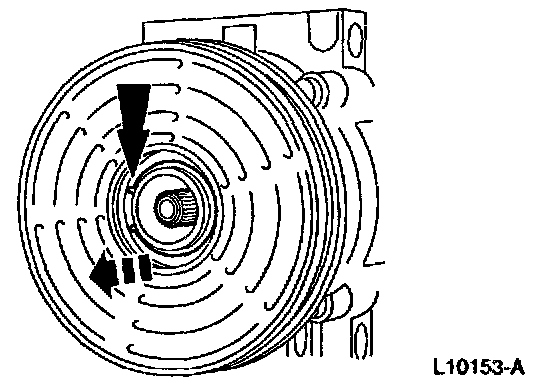 CAUTION: Do not use air tools. The A/C clutch field coil can be easily damaged.