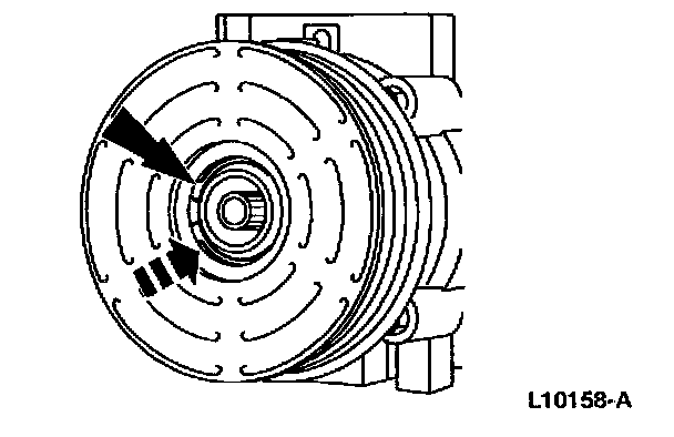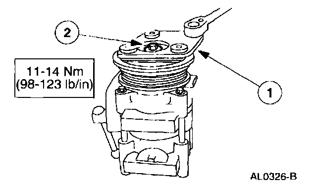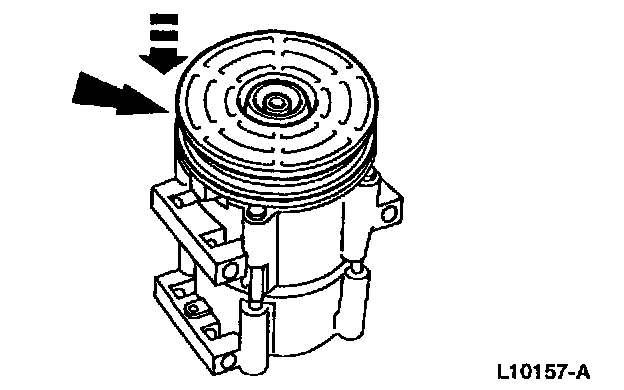 NOTE: The A/C clutch pulley is a tight fit on the A/C compressor head; it must be properly aligned during installation.