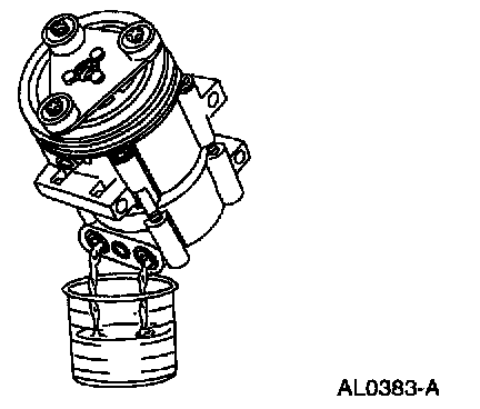 1. Rotate the A/C compressor shaft six to eight revolutions while collecting oil in a clean measuring device.