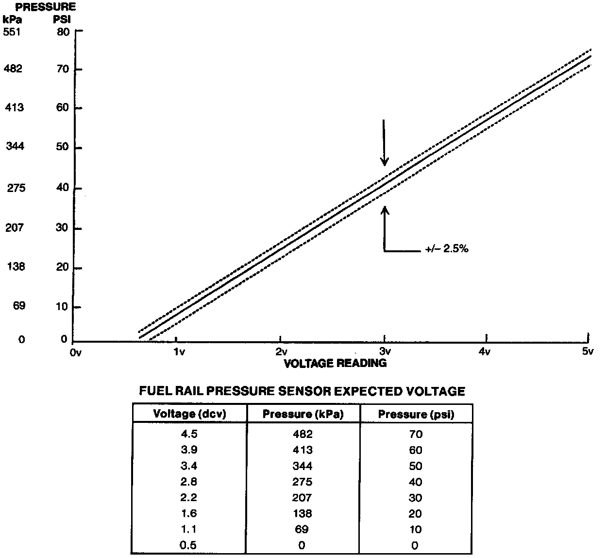 Voltage values were calculated for VREF = 5.0 volts. These values can vary 15 percent due to sensor and VREF variations.
