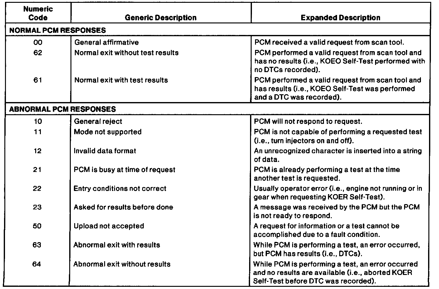 Communication Error (Normal and Abnormal PCM Responses)