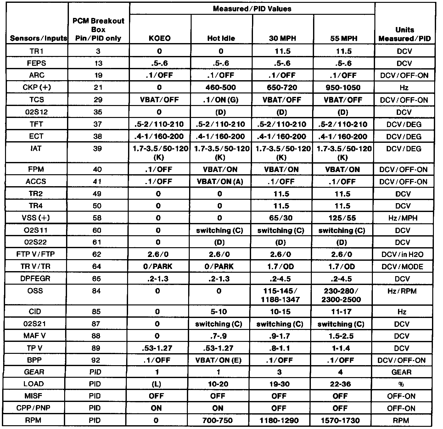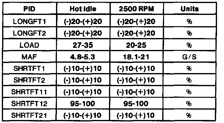 - All generic OBD II readings under no load (PARK or NEUTRAL).