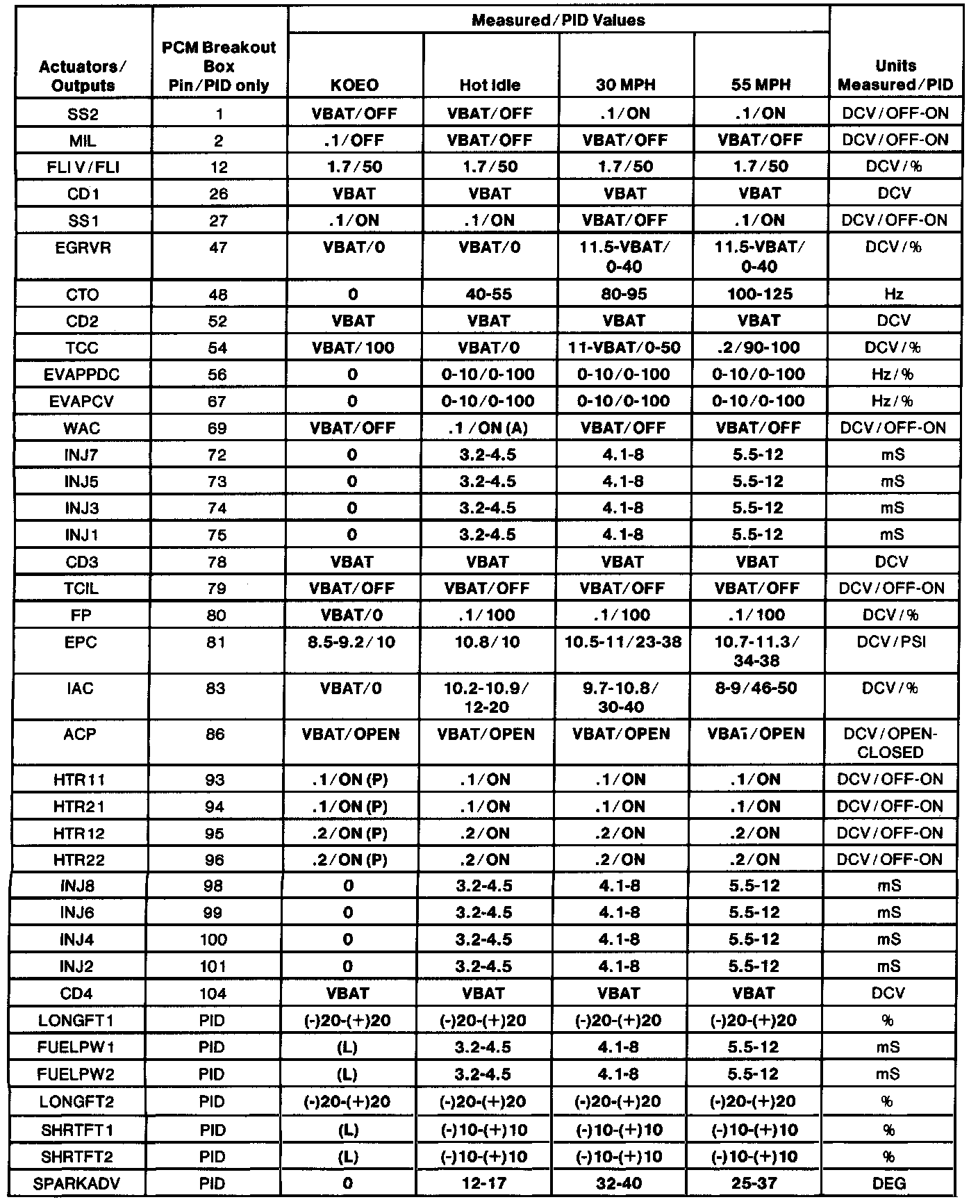 H. Values shown are commanded by the Powertrain Control Module (PCM) and may not be actual.