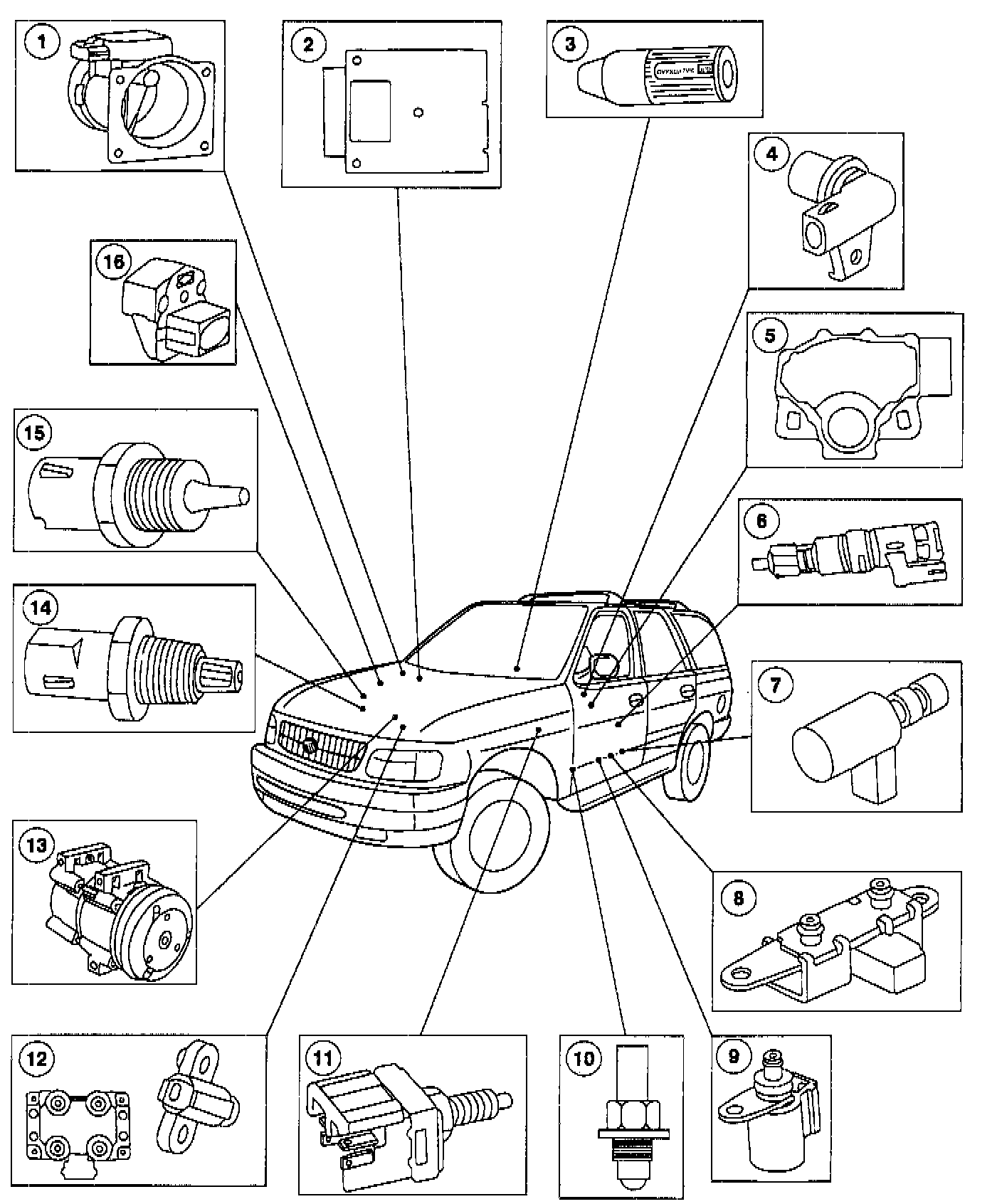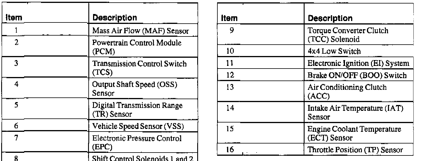 The Throttle Position (TP) sensor is a potentiometer mounted on the throttle body. The TP sensor detects the position of the throttle plate and sends this information to the powertrain control module. The TP sensor is used for shift scheduling, electronic pressure control and Torque Converter Clutch (TCC) control.