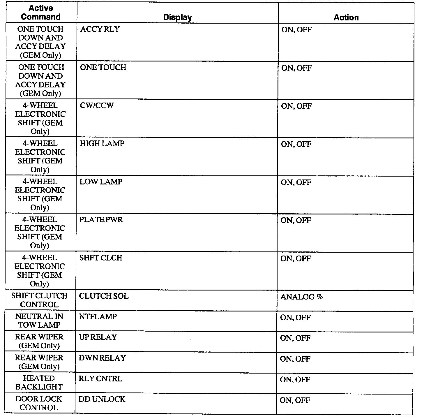 GEM/CTM Active Command Index