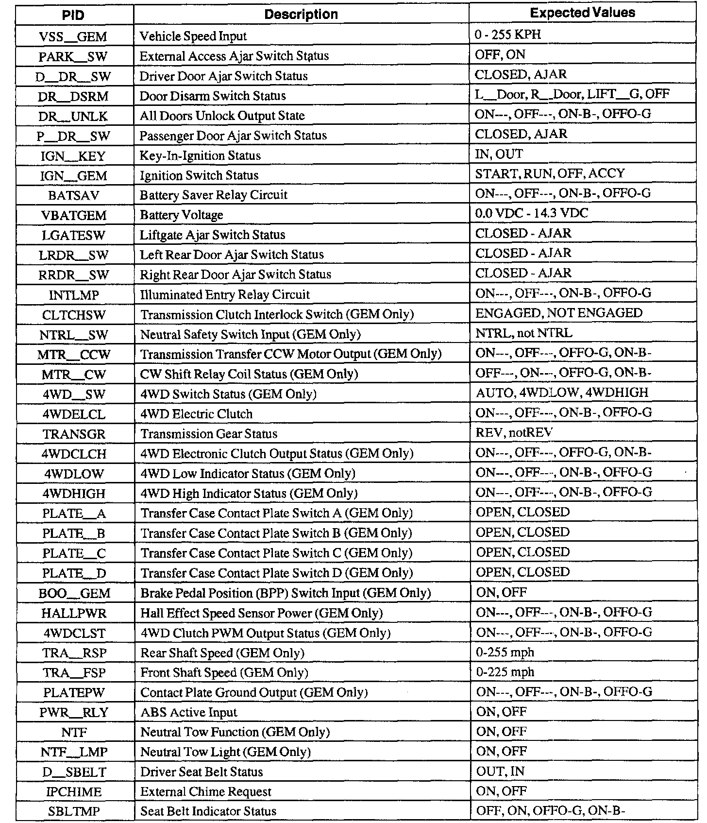 GEM/CTM Parameter Identification Index
