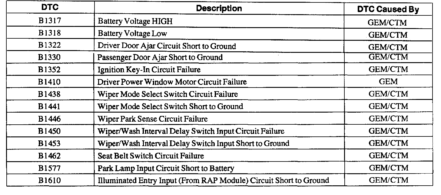 Diagnostic Trouble Code Descriptions