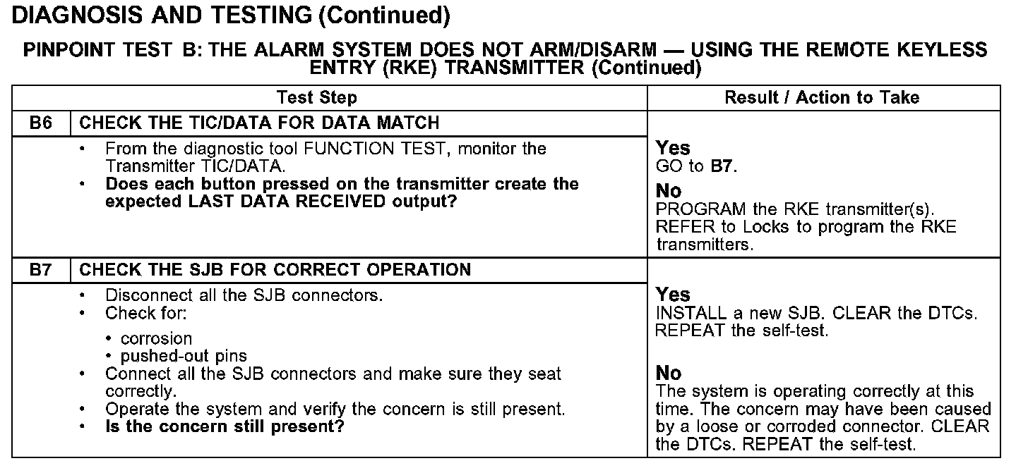 Test B: The Alarm System Does Not Arm/Disarm - Using The Remote Keyless Entry (RKE) Transmitter