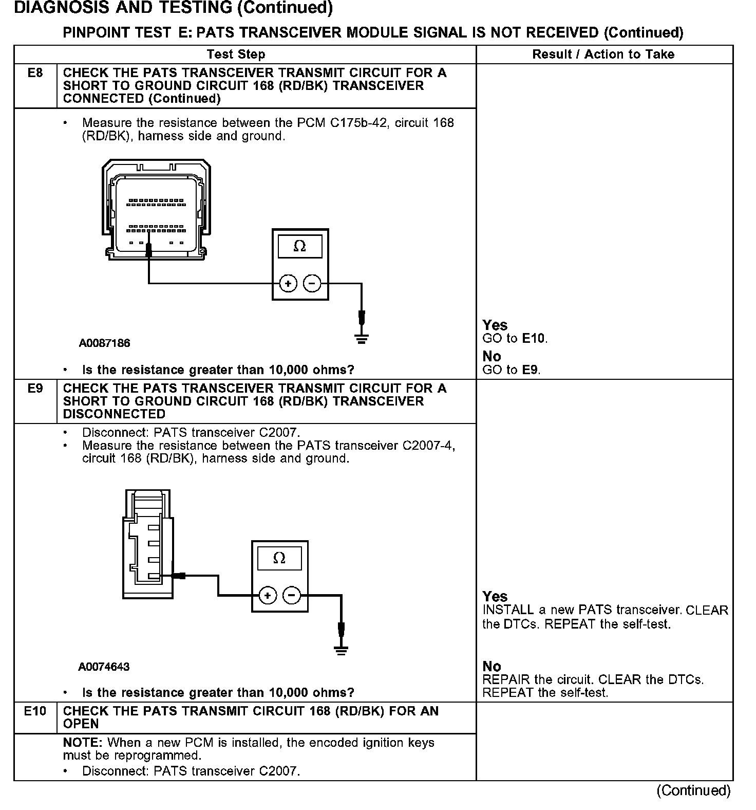 PINPOINT TEST E: PATS TRANSCEIVER MODULE SIGNAL IS NOT RECEIVEDE1-E4: