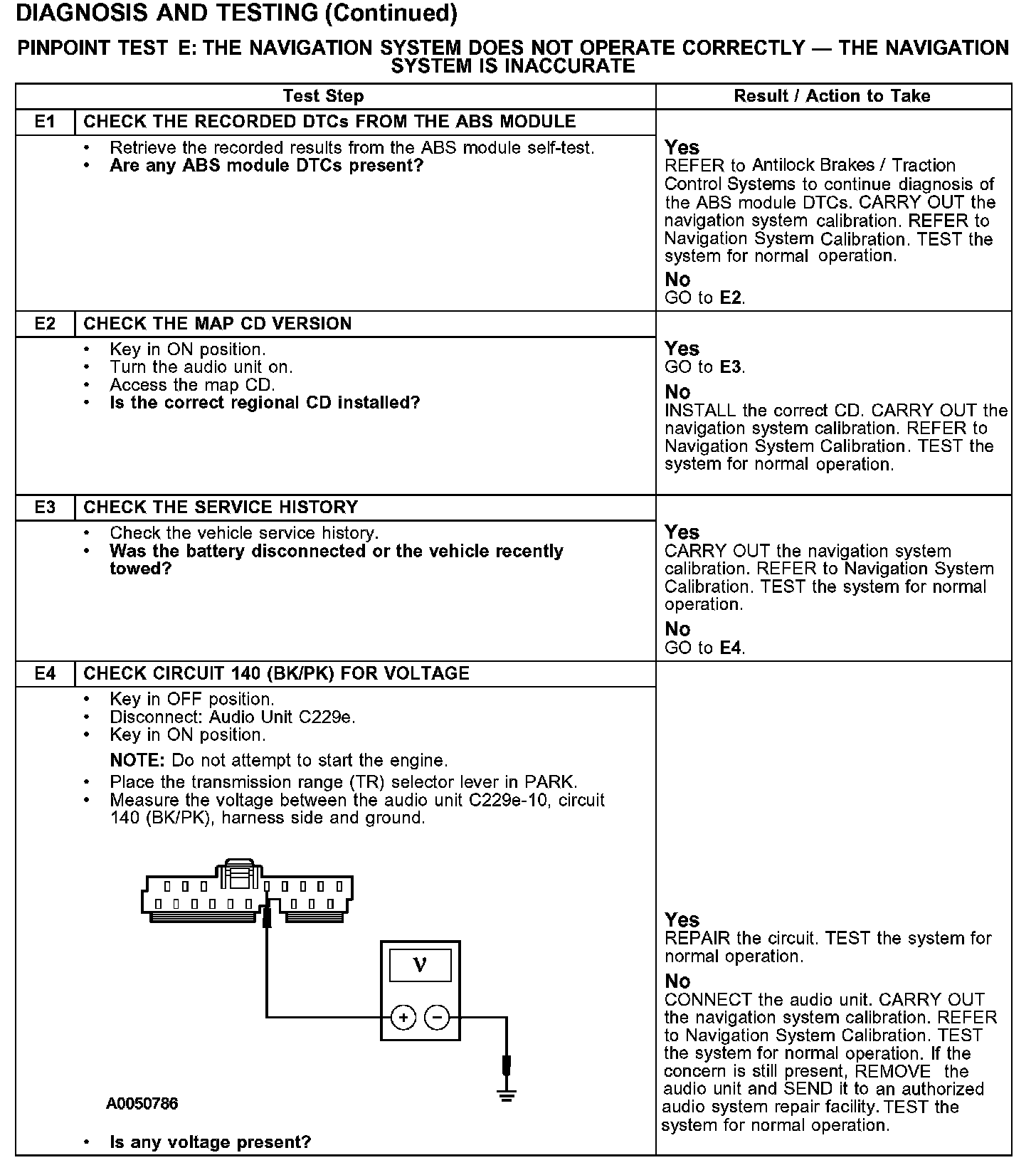 PINPOINT TEST E: THE NAVIGATION SYSTEM DOES NOT OPERATE CORRECTLY - THE NAVIGATION SYSTEM IS INACCURATEE1-E4: