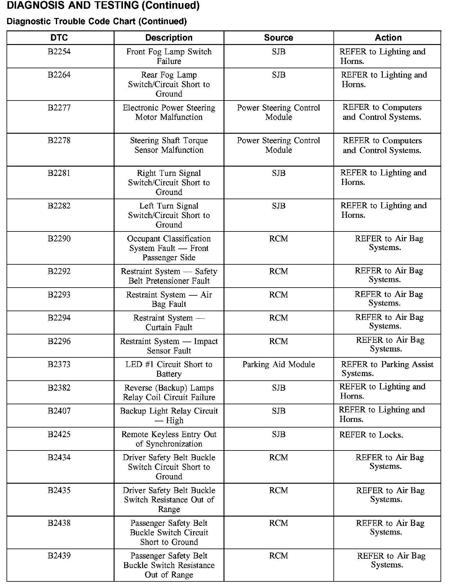 DIAGNOSTIC TROUBLE CODE CHARTB1016-B1316: