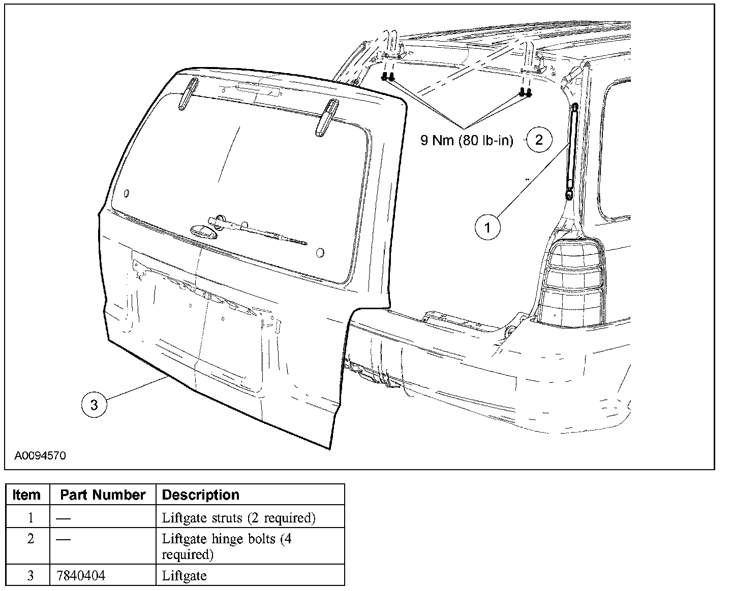 - To install, tighten to 9 Nm (80 lb-in)
