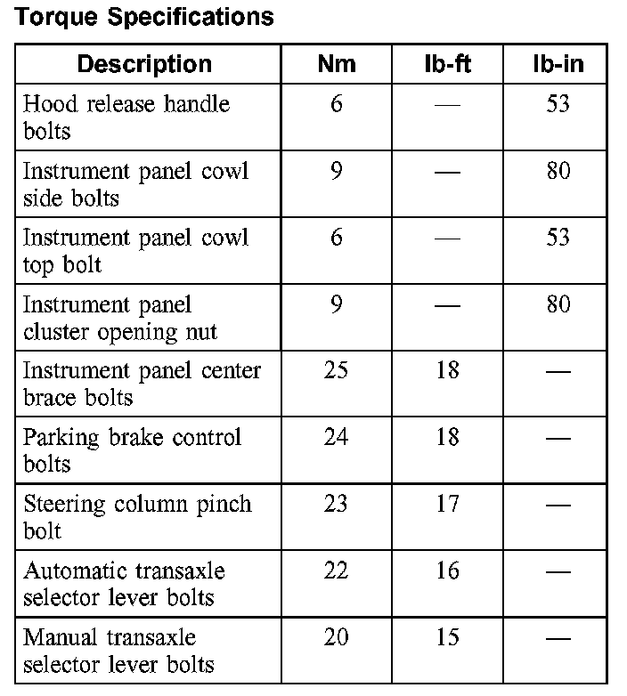 Torque Specifications:
