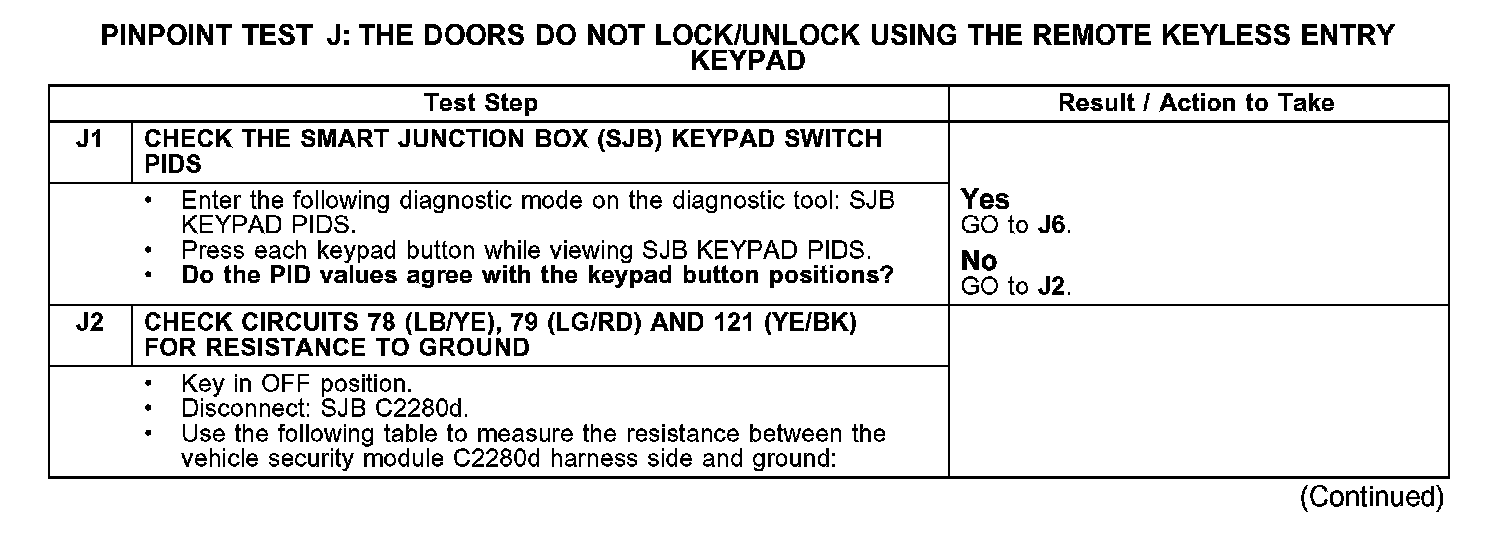 Test J: The Doors Do Not Lock/Unlock Using The Keyless Entry Keypad