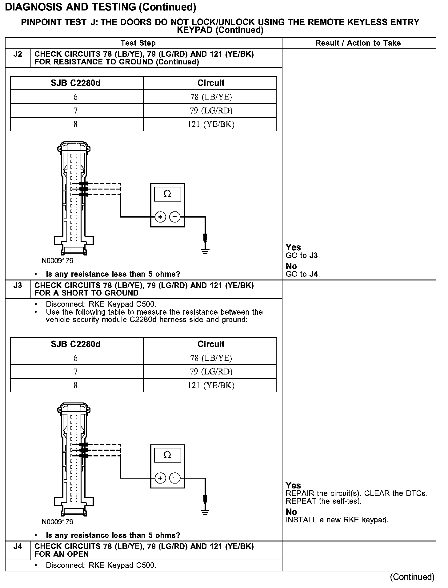 PINPOINT TEST J: THE DOORS DO NOT LOCK/UNLOCK USING THE KEYLESS ENTRY KEYPADJ1-J2: