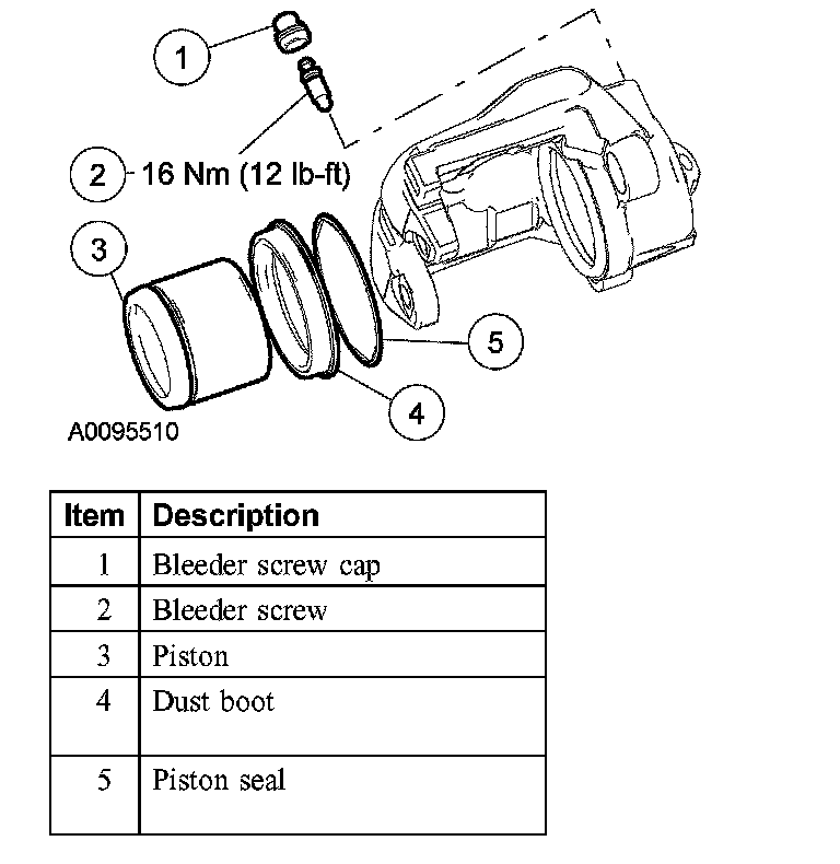 NOTE: Inspect the brake caliper piston and bore for excessive wear, corrosion or pitting. If any of these conditions exist, a new caliper must be installed.