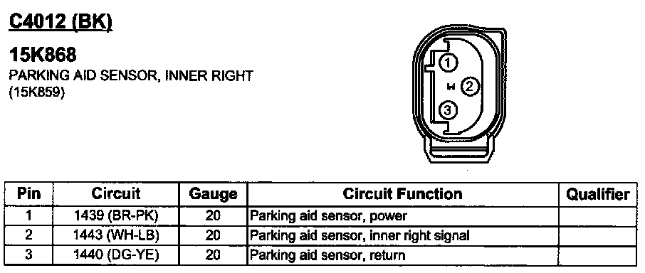 Parking Aid Sensor, Inner Right