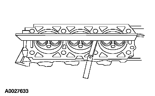 1. Use a straight edge and a feeler gauge to inspect the cylinder head for flatness. If the cylinder head is distorted, install a new cylinder head.