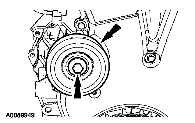 12. Loosen the bolt and remove the accessory drive belt Idler pulley.