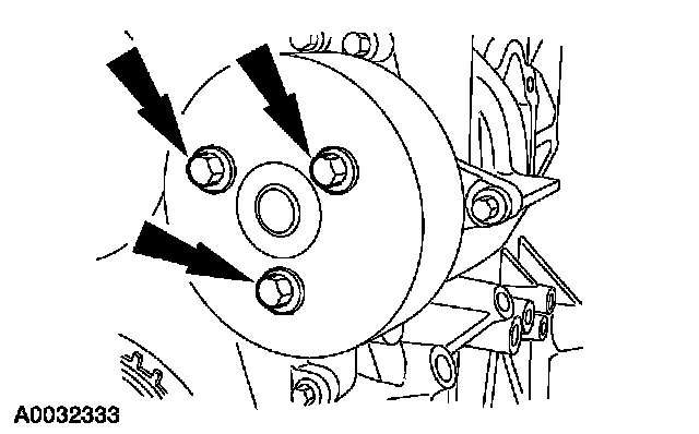 14. Remove the bolts and the coolant pump pulley.