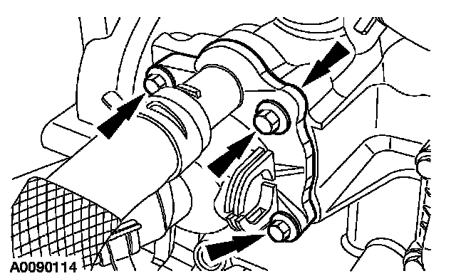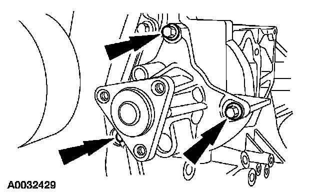 15. Remove the bolts and the coolant pump.