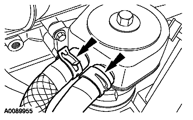 ^ Detach the 2 engine vacuum tube retainers.