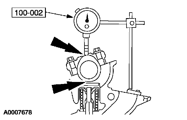 3. Install the special tool so the rounded tip of indicator is on top of the camshaft lobe and on the same plane as the valve tappet.